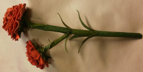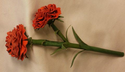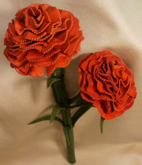 천연 가죽을 염색하여 제작한 핸드메이드 가죽 카네이션입니다.(마디샤 가죽공예
