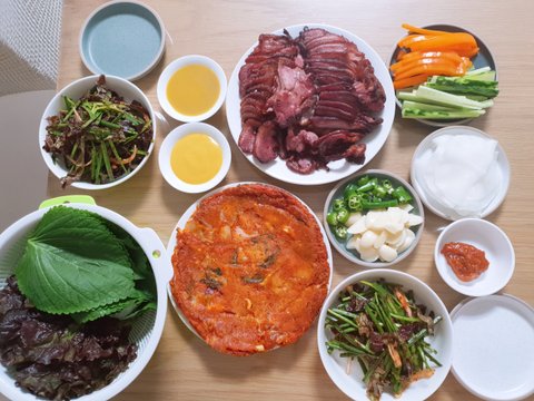집반찬과 상추쌈에 술이 술ㄹㄹㄹㄹㄹ술 들어갑니다