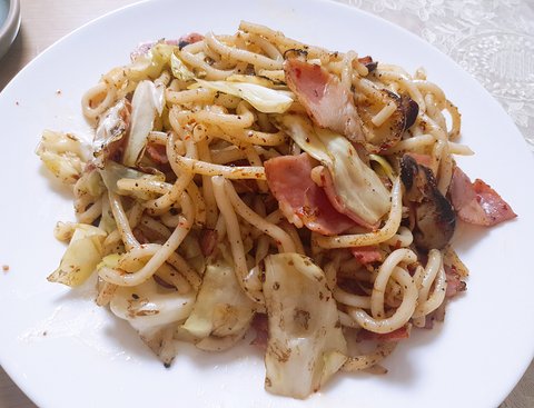 그리고 돈까스와 잘어울리는 볶음우동을 만들었어요