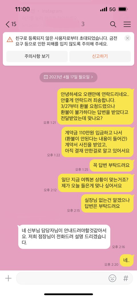 - 입금 전,후 별도 환불 규정 안내 받지 못함