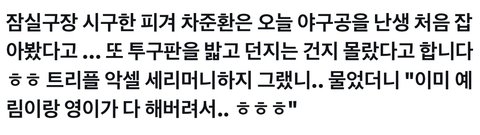 덩그러니 혼자 야구 보다가 퇴근했다고 함ㅋㅋ