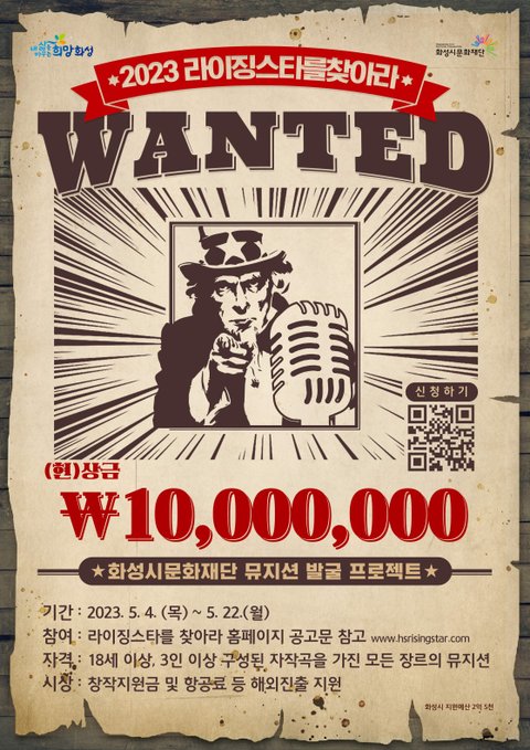 화성시문화재단(대표이사 김신아)이 주최하는 전국 밴드 경연대회 ‘2023 라이징스타를 찾아라’가 5월 4일(목) 참가자 모집을 시작으로 대장정의 막을 올렸다.
