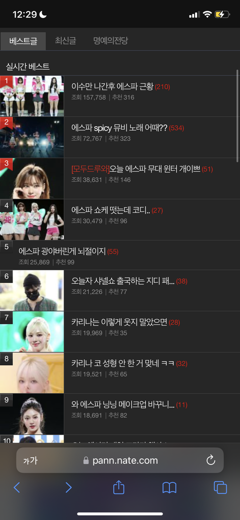 톡선 10개 중 8개가 에스파 ㅋㅋㅋㅋㅋㅋ