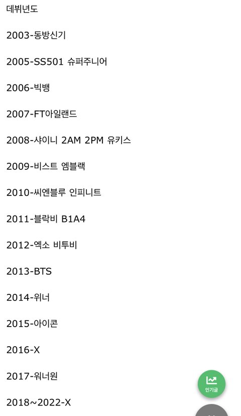 검색하다가 봤는데 데뷔년도별로 이렇다는데