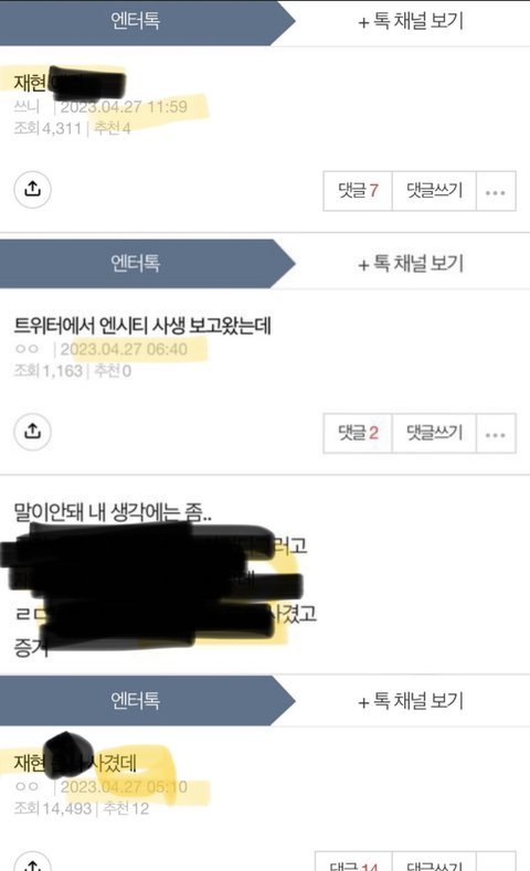 재현은 도재정 활동후 3주동안 망붕이랑 집안 까지 건드는 루머글말곤 개인 톡선 영업 아무글 없었음