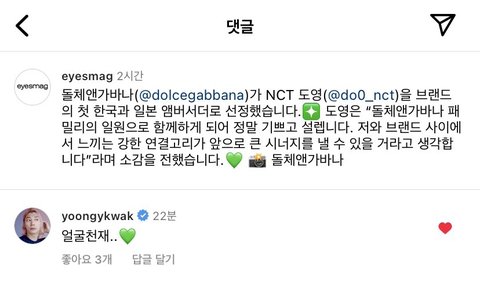 도영 돌체앤가바나 엠버서더 기사에 퍼퓸