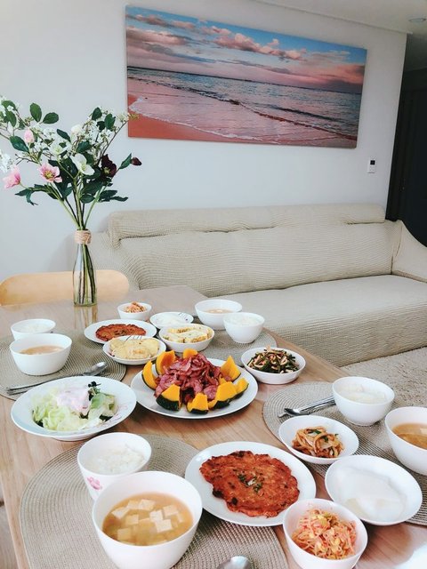 이날은 친한 친구들이 놀러와서 상을 차렸네요