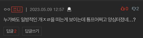 양심 터진건 너고 ㅋㅋㅋㅋㅋㅋ객관적인척 안빠는척 쓰면 뭐해 ㅋㅋㅋㅋㅋㅋㅋㅋㅋㅋㅋ툥프한테 일방적으로 프로모기간동안 성적인 욕 멸칭당하고 온갖 더러운 묘사로 까인 도재정은 그럼 일방적도 아니고 일방폭행 난do질당한거겠네^^