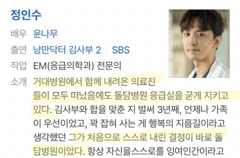 이렇게 초반에는 '김사부에게 인수쌤=거대병원에서 내려온 의사1' 에 불과했음