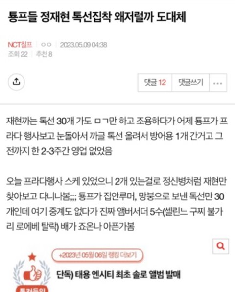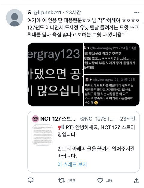 웃긴건 쟤 타팬도 아니고 127팬임ㅋㅋㅋ127톡에 썼던글이랑 존똑
