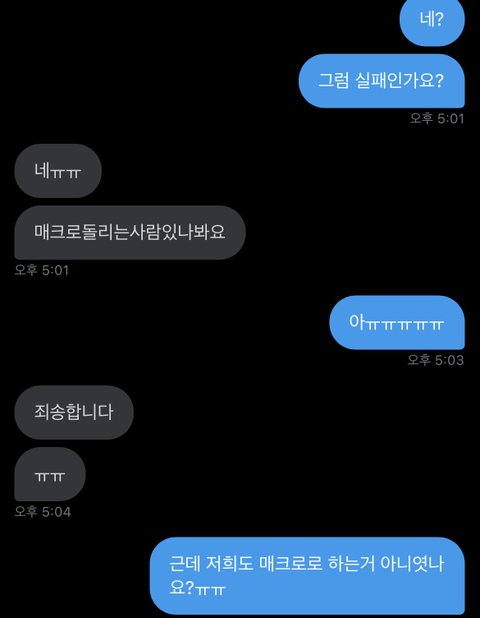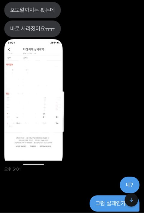 구오빠때 아옮으로 티켓 양도 받으려고 업자구해서 컴퓨터 3대 키고 매크로도 썼는데 실패했어 물론 더 실력 좋은 사람이 하면 가능했을수도 있지만,,, 근데 솔직히 누가 잘하는 사람인지 알 수도 없고 그런 사람은 더 비싸겠지..? 그리고 운 안좋으면 그 사람도 실패할 수도 있구,,, 아옮으로 양도 받을 사람 있으면 신중하게 생각해봐