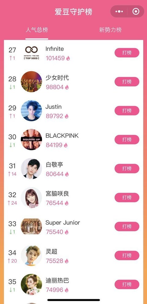 2019년 중국 전체 아이돌 인기순위