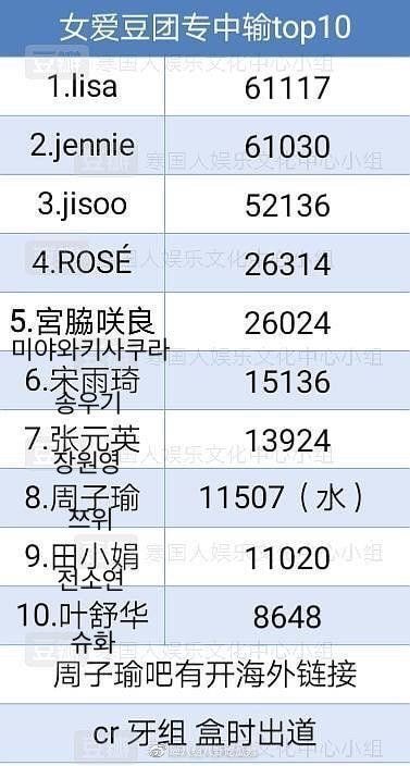 2023년 현재 중국내 4세대 kpop걸그룹 개인 팬덤순위