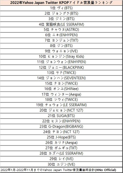 2022kpop그룹 개인 일본 트위터 검색량 4위