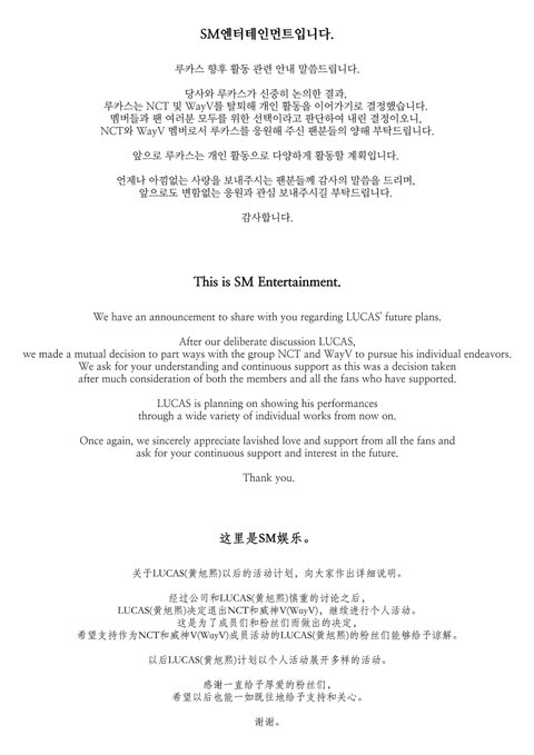 와 엔시티 루카스 드디어 탈퇴한댄다