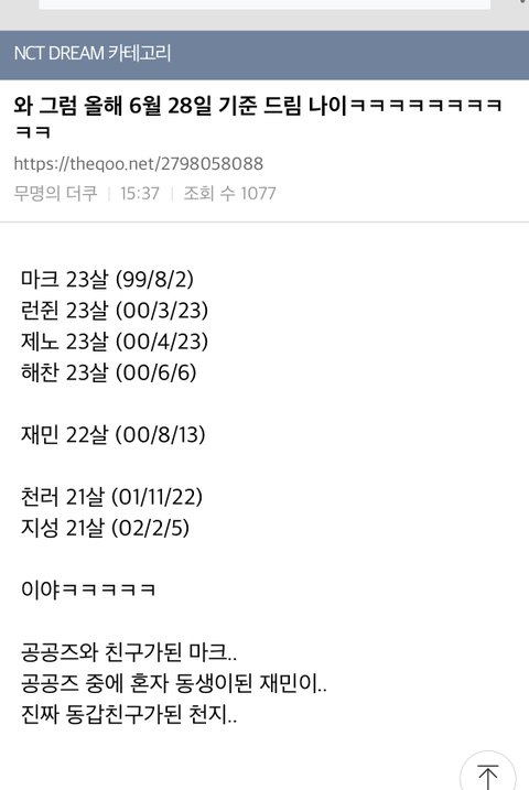 6월 28일부터 만나이 시행이라는데 드림이들