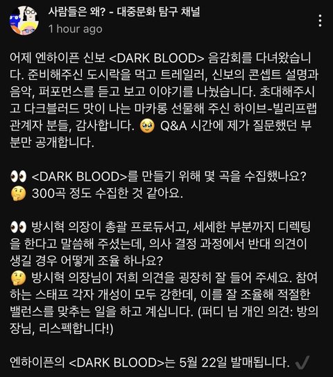 엔하이픈 신곡 만들려고 300곡 수집했대