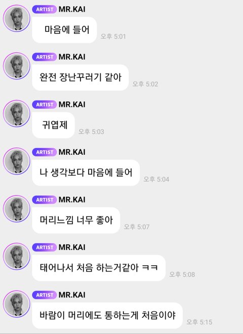카이 내일 군대가서 삭발 사진 버블에 올려줌