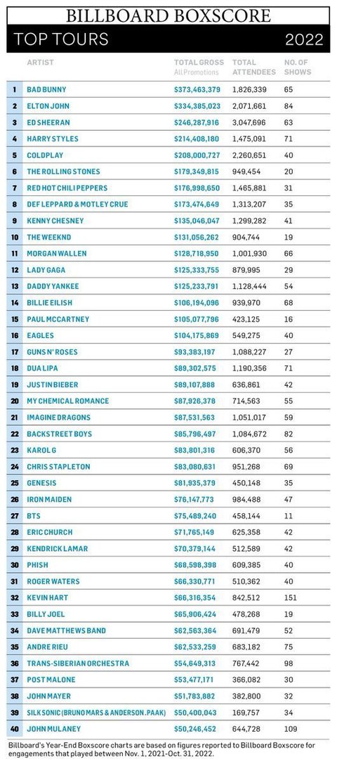 1위 방탄소년단 - 한화 약 1586억, 7회 공연