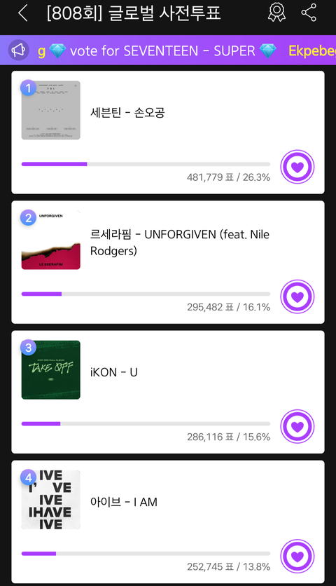 음중 박빙이라면서 르세라핌한테 밀리는 중