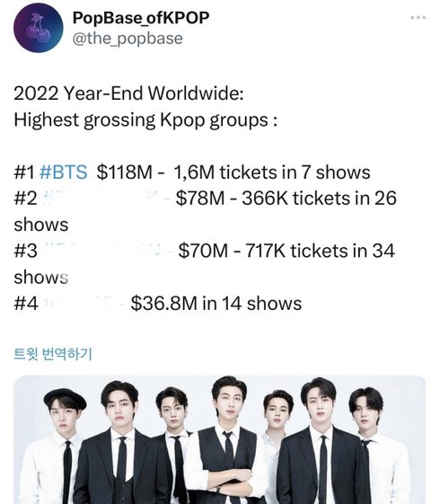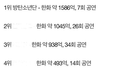 작년 콘서트 매출이라는데 방탄은 매출도 매출인데 공연횟수좀봐ㅋㅋㅋ
