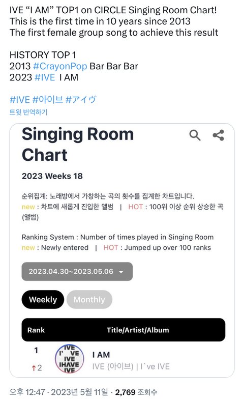 아이엠이 걸그룹 노래로는 10년만에 써클차트 노래방 1위