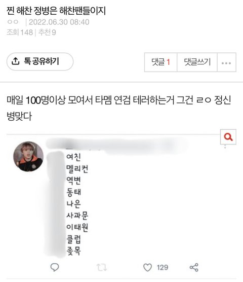 갤 용어로 연검 조작하던 2만팔로워 소유 해찬 네임드