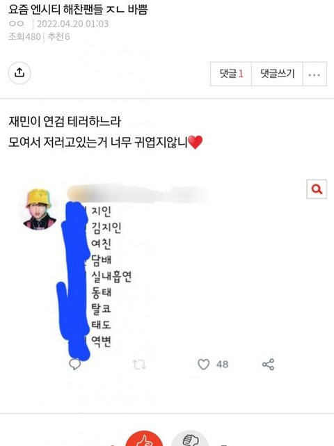 엔시티 연검 조작하던 해찬 단톡 왜 글 삭제함?