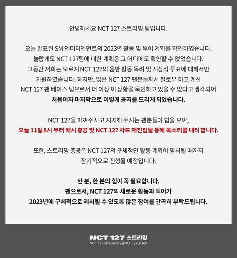 8시부터 127 활동 지지 총공하는데