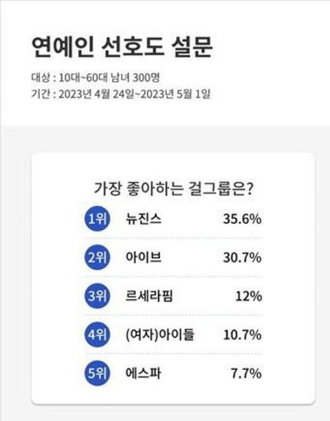 최근 가장 좋아하는 걸그룹 선호도 설문조사 순위래