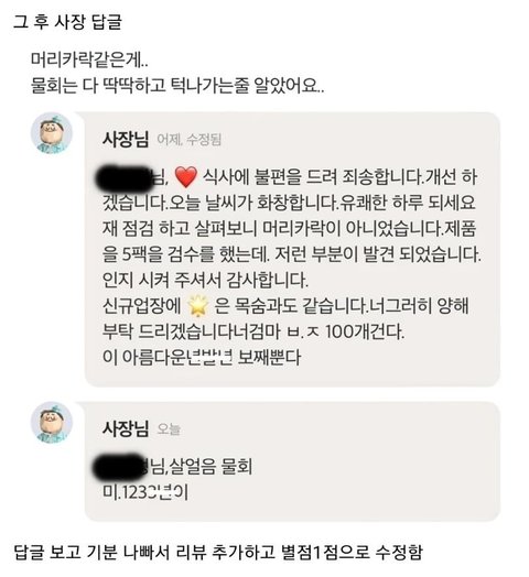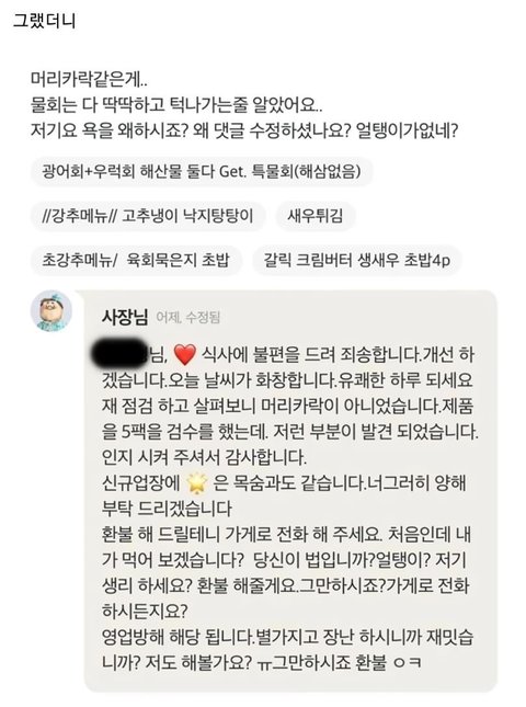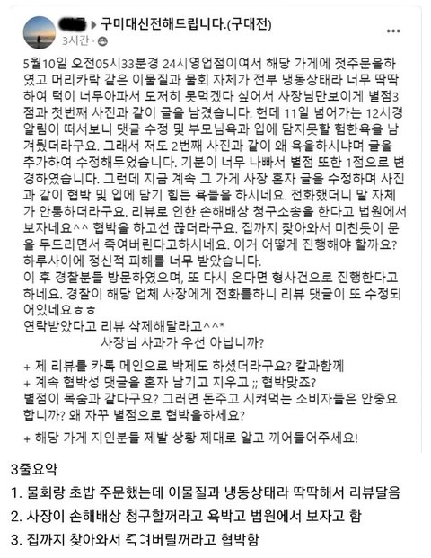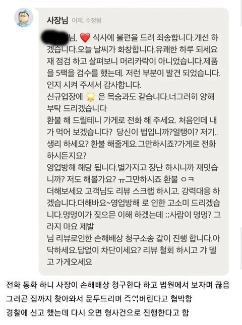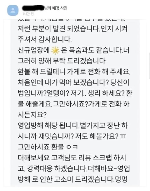 음식 이물질 나왔다고 리뷰 썼다가 살ㅎH협박