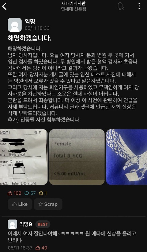 연세대 임신사건 남자도 잘못있지 ㄹㅇ