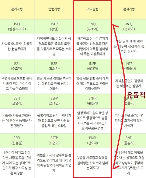 제가 우울할때 검사하면 INFJ인데 하는일이 잘되고 운이 따라줄땐 enfj(전도자)의 성향도 나타납니다.