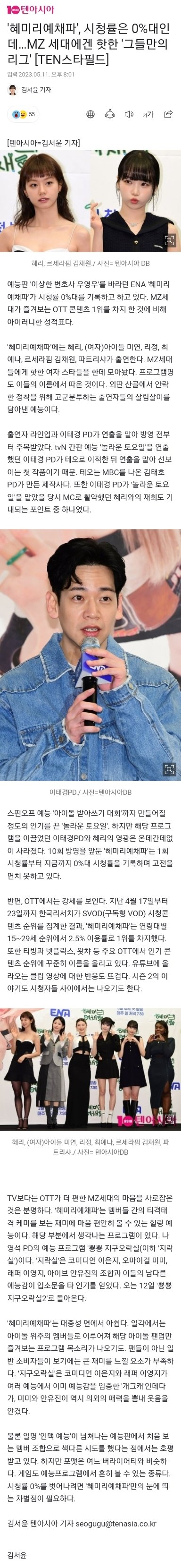 '혜미리예채파', 시청률은 0%대인데…MZ 세대에겐 핫한 '그들만의 리그' [TEN스타필드]