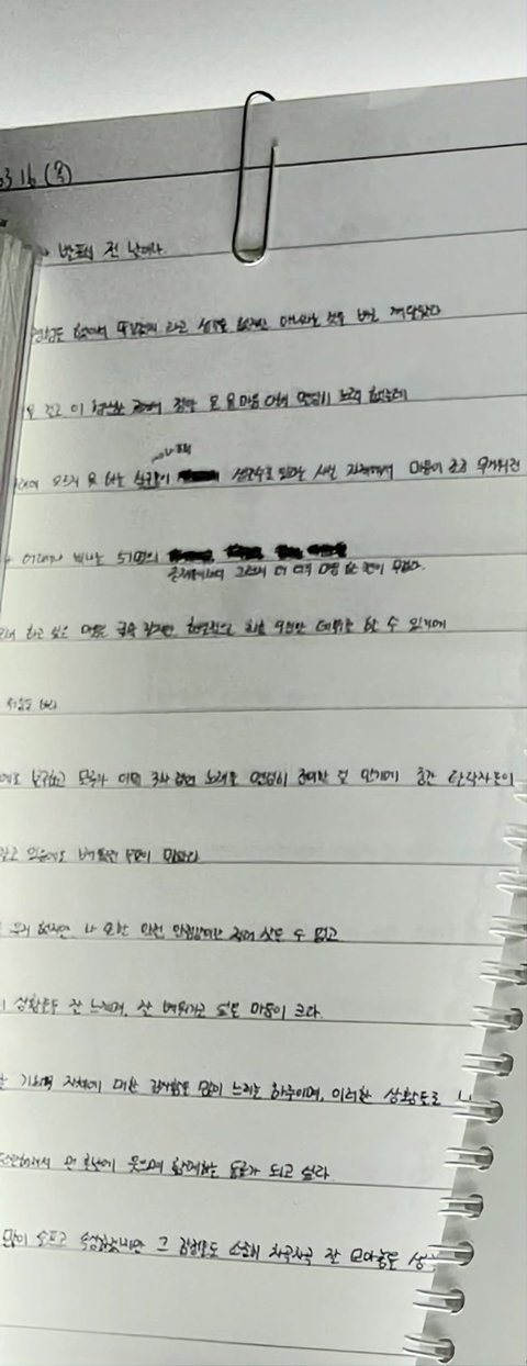 아 한빈이 일기 눈물난다 ㅠ