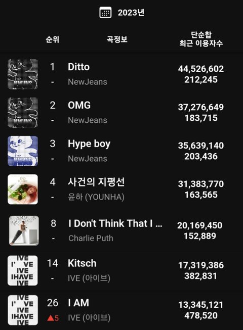 뉴진스 디토 연간 1위 확정에 아이브 곡과 윤하 찰리푸스 확정