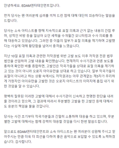 아이유 소속사 입장문