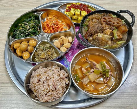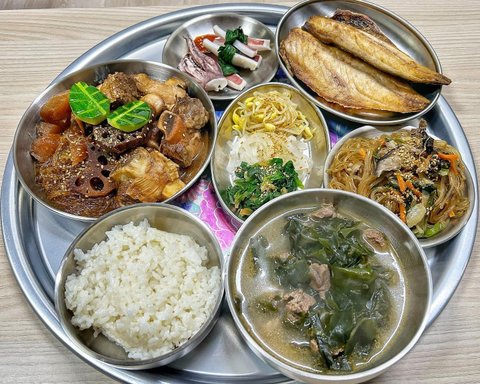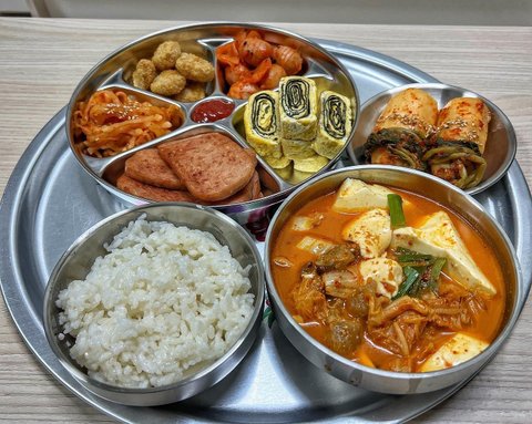 김계란말이와 반찬들 그리고 순두부를 넣은 김치찌개