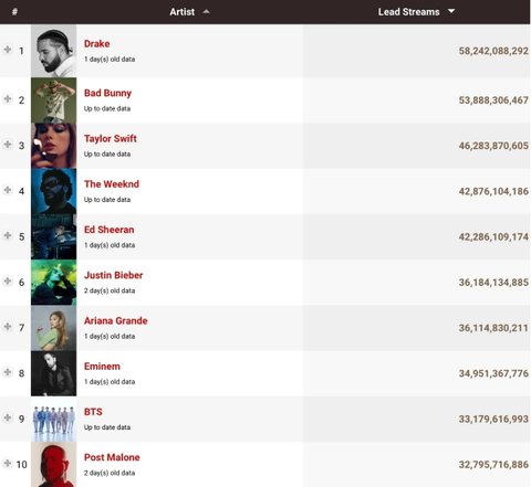 1위 드레이크 582.4억 (데일리 3670만)