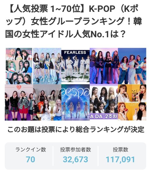 2,3위구간 있지가 트와 내리사랑 받는중인가본데 jyp팬덤이랑 르세라핌팬덤이랑 치열했음 5,6위구간 뉴진스가 kpop스트리밍 잘나가나봄 1위래 근데 팬덤이 작은가봐 팬덤강한 아이브랑 치열했음 8,9,10위는 그냥 자주바뀜