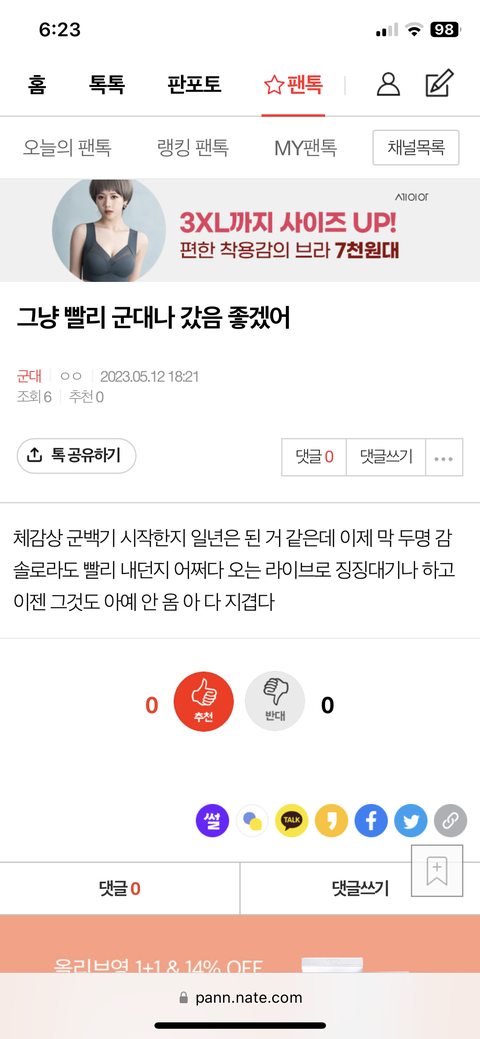 ‼️조방‼️ 그냥 빨리 군대나 갔음 좋겠어