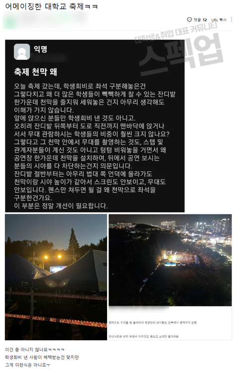 대학 축제는 그래도 다같이 즐기려고 하는거아닌가..