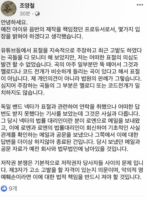 엥 뭐야 넥타 얘기도 구라였음? 그걸로 ㅈㄴ 잡고 늘어지던데 역시 구라였네 ㅋㅋㅋㅋㅋㅋ 점점 아이유랑 아이유 노래 작곡가분들 쪽 억울함만 풀리는 중이네