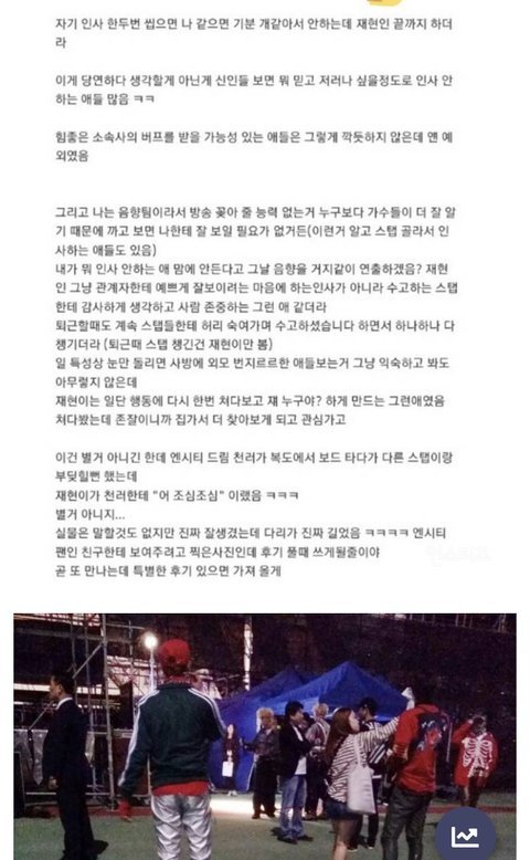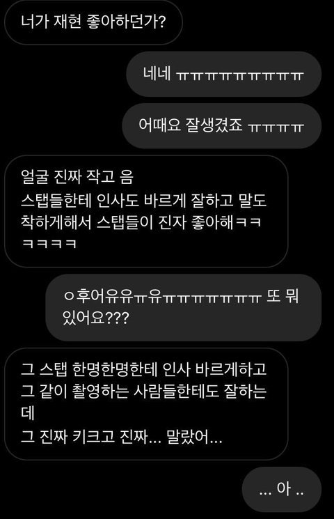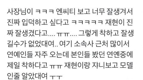 그 서공예출신 뷰티유투버도 라방에서 동창이였는데 스엠부심 1도 없고 학교에서 재현 ㅈㄴ 착했다잖음 다른 아이돌 동창들도 재현 성격 미담밖에 없고