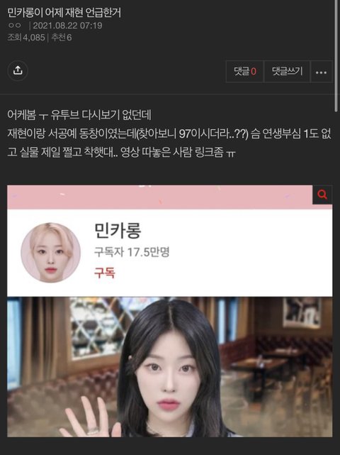 추반용) 과거 싹 다털려도 여돌 얘기하나 안하고 여자 후려치는 발언 하나 안하고 그 흔한 욕설 하나없이 스타나 가끔하던 청정그자체 재현과거나 보고가라