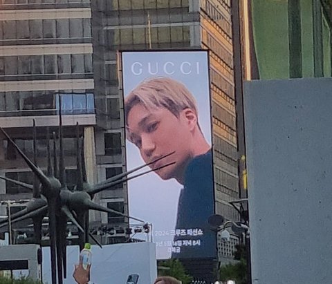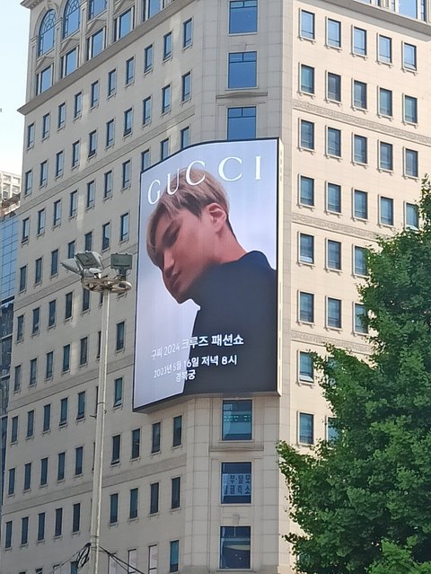 그래도 카이를 미리 촬영해놓은 구찌측이 대대적으로 서울 여기저기에 초대형 광고를 내걸음