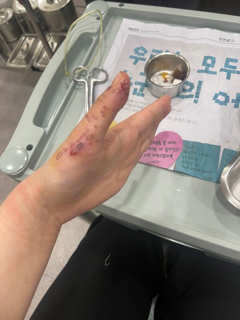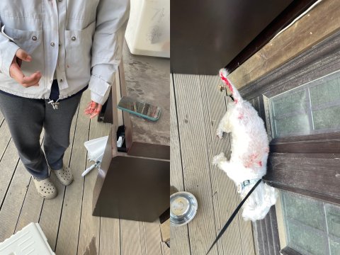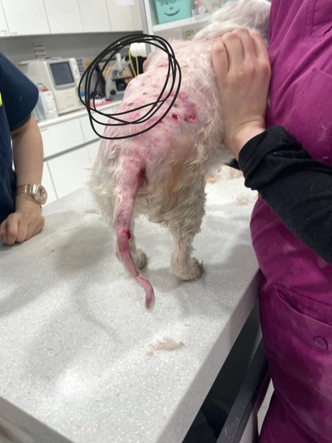 저희 강아지는 발톱이 빠지며 복부가 뚫려 공기가 차 제거하는 수술과 이빨이 꼬리뼈를 관통해 절단 수술을 했습니다. 저는 사고 당시 제 강아지를 감싸 안아 떨어뜨려 놓는 과정이 손이 물려 전치 3주가 나왔습니다.