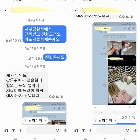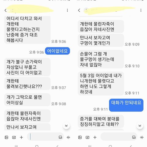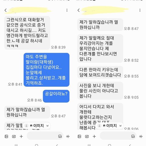 그저 견주가 경찰을 통해 도의적인 사과와 저희와 대화를 하고 싶다고 하여 먼저 연락했을 뿐인데 이렇게 모욕적인 말을 들으며 저희 가족이 가만히 있어야 하는걸까요?