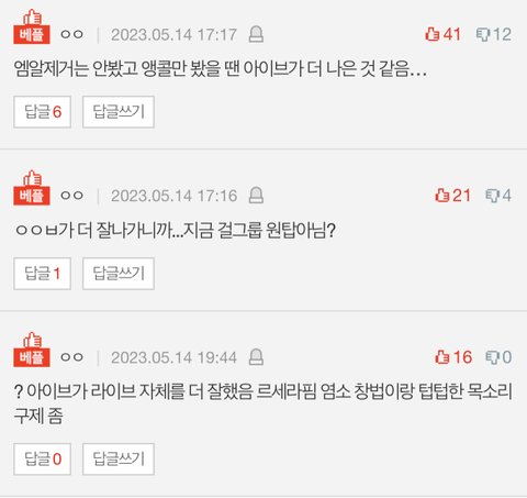 엠알제거는 안봤고 앵콜만 봤을 땐 아이브가 더 나은 것 같음…