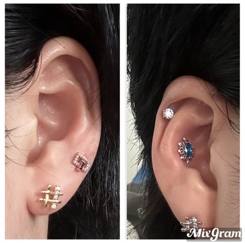 14k 금 피어싱 뚫었다 오른쪽 한개 왼쪽 두개 어때??